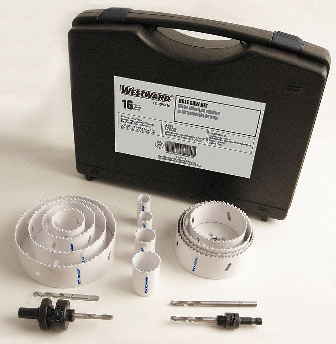 WESTWARD Hole Saw Kit, Primary Material Application Wood, BiMetal